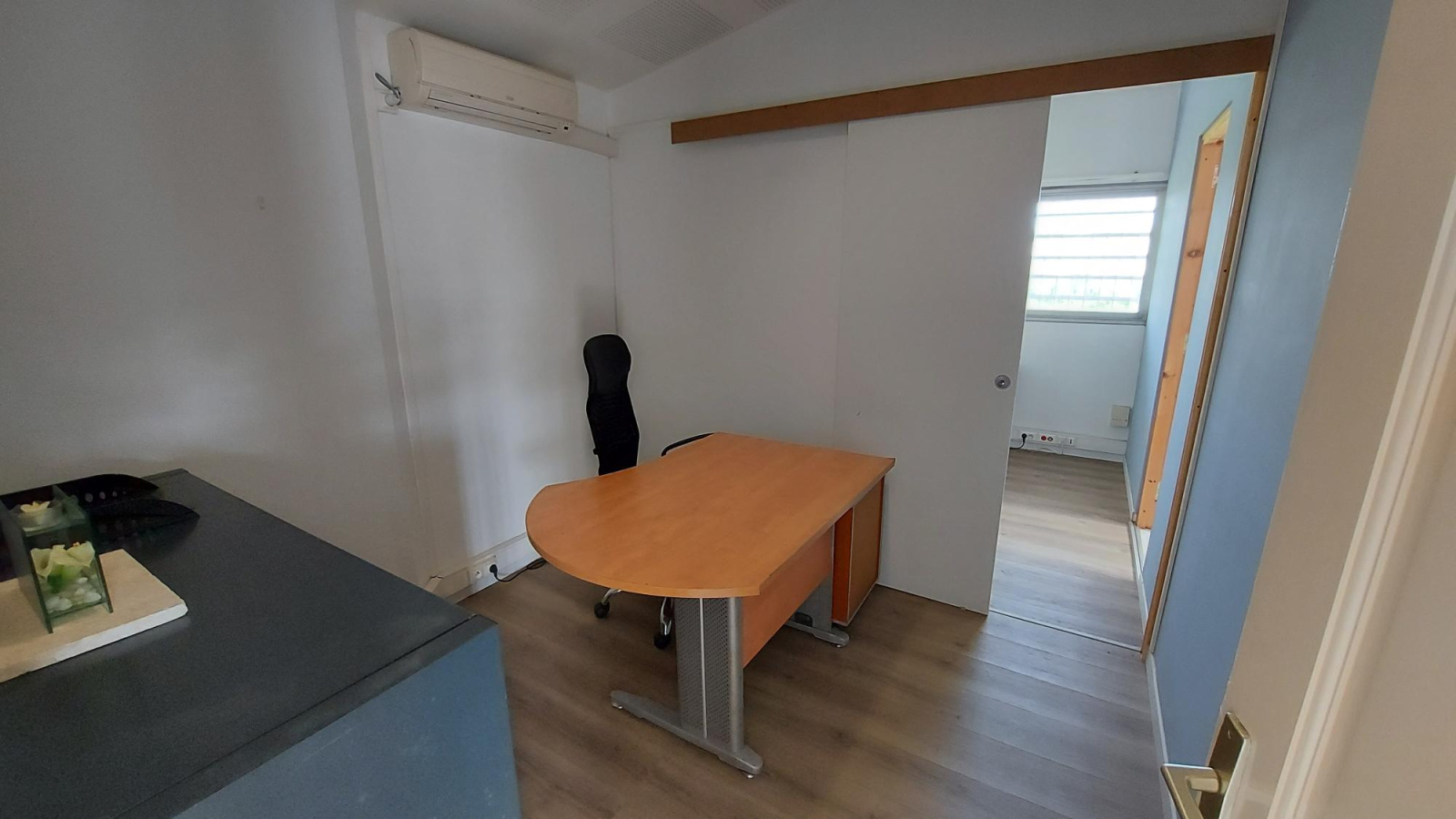 Un local à usage professionnel constitué de : un espace accueil, un espace informatique, deux bureaux, un WC avec lavabo. Surface 43m² env.