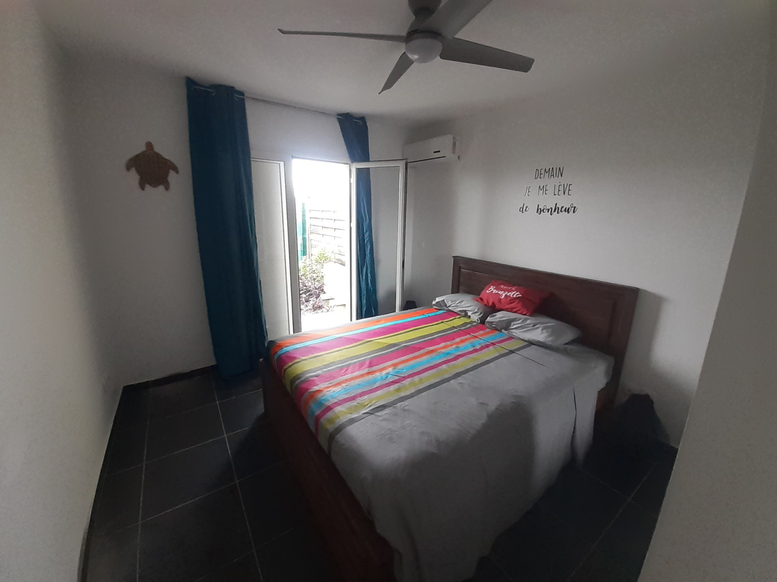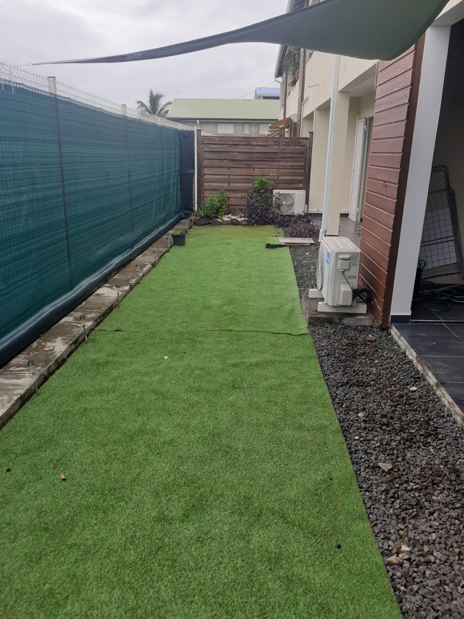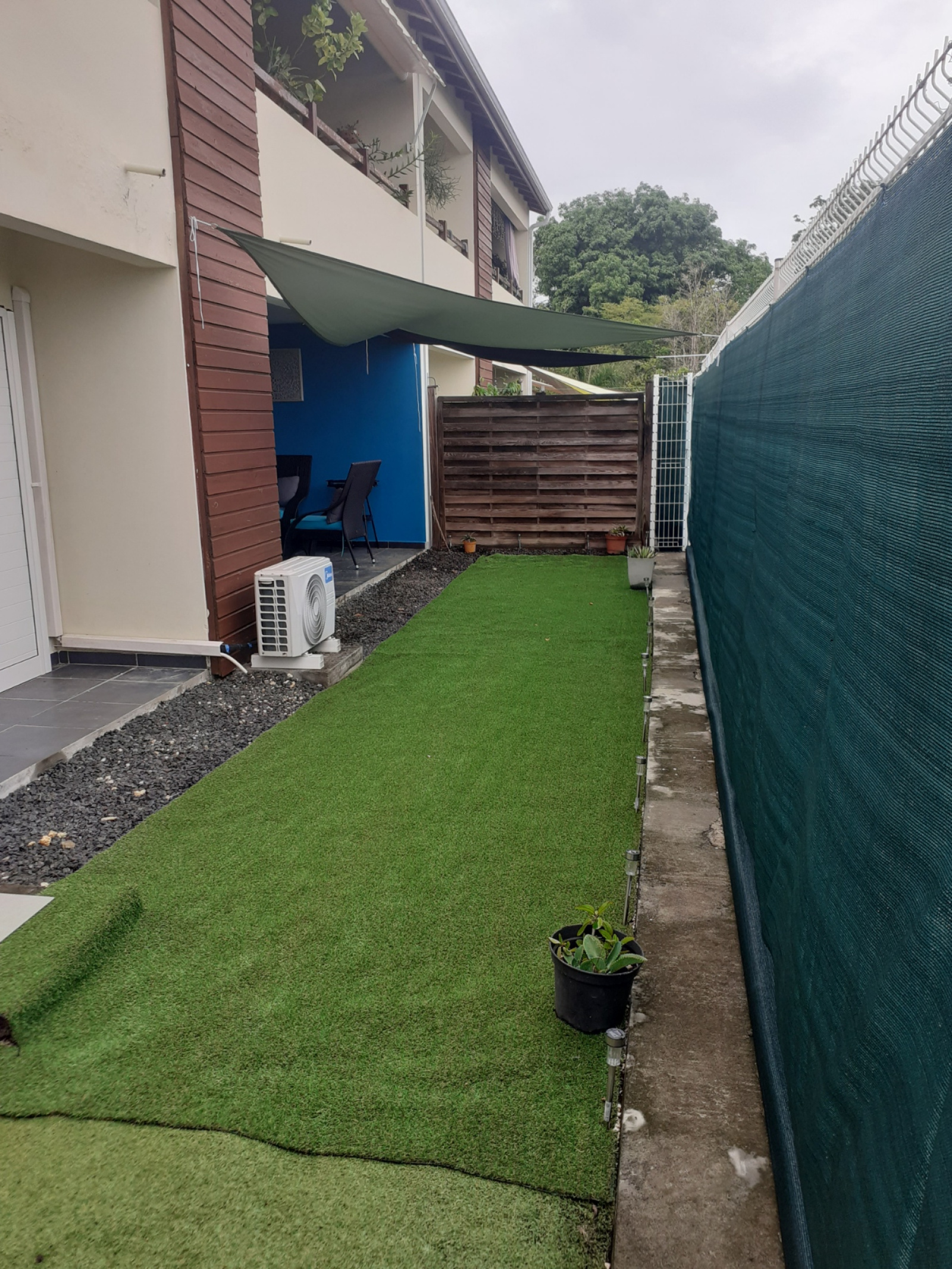 Il comprend : deux chambres climatisées, un séjour, une salle d'eau , un WC, un dressing, une terrasse, et un grand jardin clotûré le tout dans un environnement agréable.
