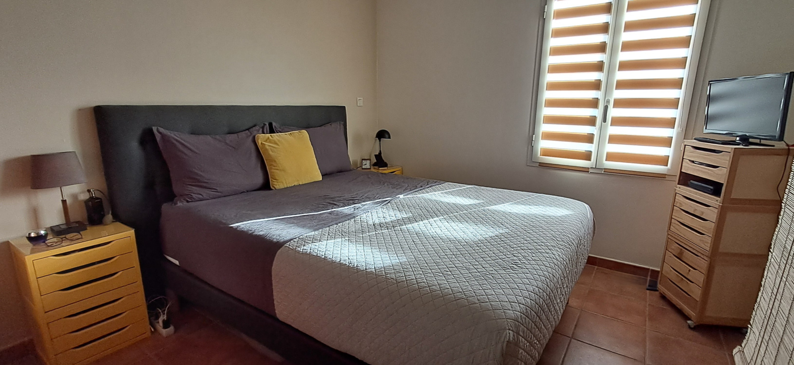 - Une chambre spacieuse avec rangements, alliant confort et praticité